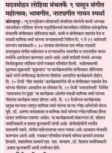 January 19, 2026 / News / 1 minute of reading रसिकाग्रणी मदनमोहन लोहिया सांकृतिक मंच २०२६ – संगीत समारोहची (८ जाने. ते ११ जाने.२०२६)